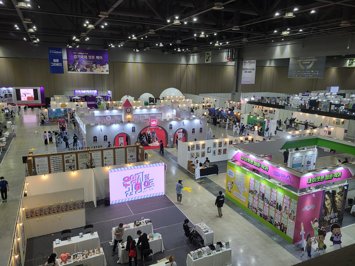 경기도가 주최하고 경기콘텐츠진흥원, 킨텍스, 한국만화영상진흥원이 공동 주관한 ‘2021 경기국제웹툰페어’는 지난 7일부터 10일 고양시 킨텍스에서 코로나19 방역 수칙을 준수하며 운영됐다.
