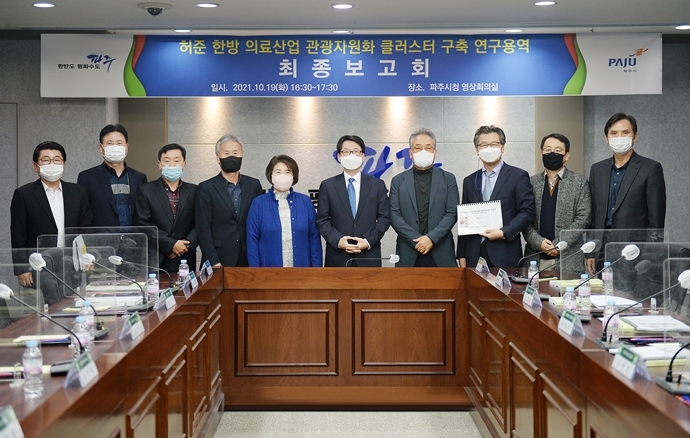 파주시가 지난 19일 파주시청 영상회의실에서 최종환 파주시장, 한양수 파주시의회 의장, 시민자문단, 관계 공무원 등이 참여한 가운데 ‘허준 한방 의료산업 관광자원화 클러스터 구축’ 연구용역 최종보고회를 개최했다.