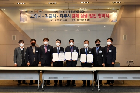 29일 경기도에 따르면, 이날 고양시, 김포시, 파주시는 일산 킨텍스 제2전시장 408호 회의실에서 이 같은 내용의 ‘경기 서북부 경제상생 발전을 위한 업무협약’을 체결했다.