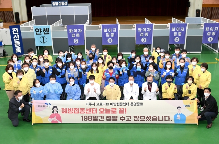 파주시 예방접종센터 중 운정행복센터 예방접종센터는 지난 10월 14일에, 파주시민회관 예방접종센터는 10월 30일을 마지막으로 운영을 마쳤다. 지난 4월 15일 예방접종센터 개설 후 198일만이다. 운정행복센터 예방접종센터에서는 2만8,464명에게, 파주시민회관 예방접종센터는 파주시민 10만8,265명에게 백신접종을 시행했다. 그 결과 파주시민 1차 접종률(10월 29일 기준)은 78.1%, 접종 완료율은 72.5%를 넘어섰으며 11월 1일부터 시행되는 단계적 일상회복 방안 시행의 토대를 마련했다.