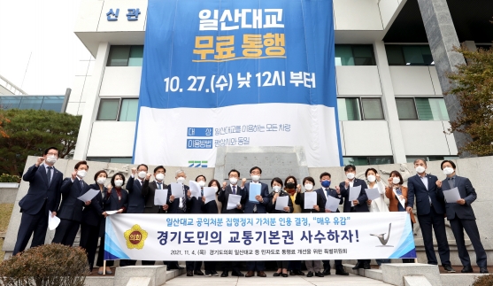 우리 특별위원회는 어제 오후 경기도의 일산대교 통행료 무료화를 위한 사업자 지정취소 결정에 대한 법원의 집행정지 결정 소식을 접하고, 어렵게 무료화된 일산대교가 다시 유료로 되는 것은 아닌지 걱정스러운 마음에 오늘 기자회견을 가지게 되었습니다.