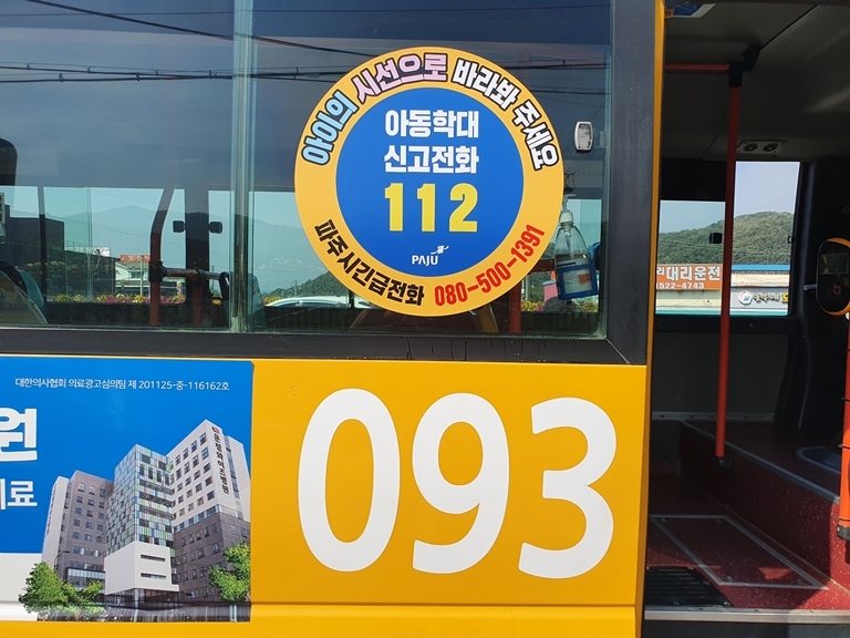 파주 전역에서 운행하는 개인·법인 택시 총 746대에 ‘아이의 시선으로 바라봐 주세요’라고 적힌 아동학대 근절 스티커를 부착해 아동학대 예방 홍보를 시작했다. 또, 파주시 준공영제 마을버스에도 아동학대 예방스티커를 부착하는 등 시민들이 접하기 쉬운 대중교통을 활용해 생활밀착형 홍보를 진행하고 있다.