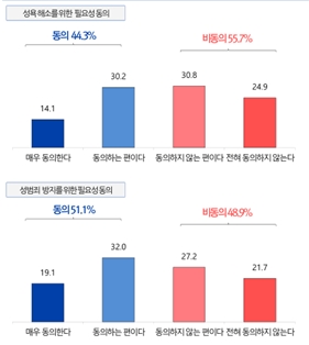 2020년 하반기에 실시한 ‘파주시 성매매 관련 인식 조사’에서 ▲성매매는 성욕 해소를 위해 필요하다는 인식이 44.3% ▲성매매는 성범죄 방지를 위해 필요하다는 인식이 51.1%로 매우 높게 나타나 성매매에 대한 올바른 이해를 형성할 수 있도록 예방 교육이 시급함을 확인했다.