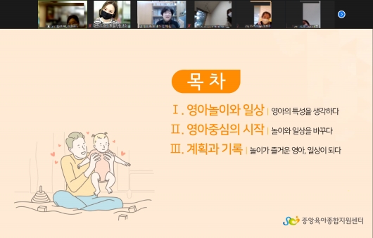 파주시(시장 최종환)는 육아종합지원센터를 통해 어린이집 보육교직원 50명을 대상으로 ‘제4차 표준보육과정 놀면서 자란다(0-2세 보육과정)’를 실시간 화상교육으로 진행했다.