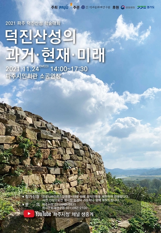 파주시(시장 최종환)가 오는 24일 덕진산성(사적 제537호) 종합정비계획 수립의 학술적 토대를 마련하기 위해 ‘파주 덕진산성의 과거·현재·미래’를 주제로 학술대회를 개최한다.