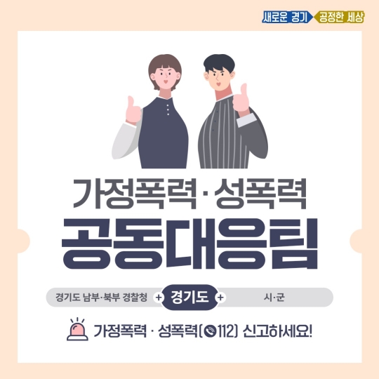 경기도가 가정폭력·성폭력 신고 시 피해자 초기 상담, 복지 지원, 지원기관 연계 등을 함께 수행하는 ‘가정폭력·성폭력 공동대응팀’을 올해 부천·하남시에 이어 내년 2곳을 추가 운영한다.