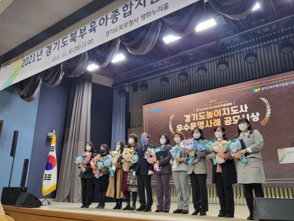 경기도는 30일 경기도 북부청사 평화누리홀에서 놀이지도사 및 인성교육을 우수하게 운영한 도내 어린이집 등을 격려하는 ‘2021 경기도북부육아종합지원센터 분야별 공모전 시상식’을 개최했다.