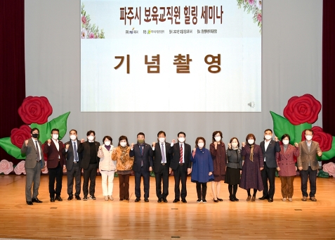 파주시는 지난 3일 문산행복센터 대공연장에서 어린이집 교직원들의 노고를 위로하고 격려하고자 ‘2021년 보육교직원 힐링세미나’를 개최했다.