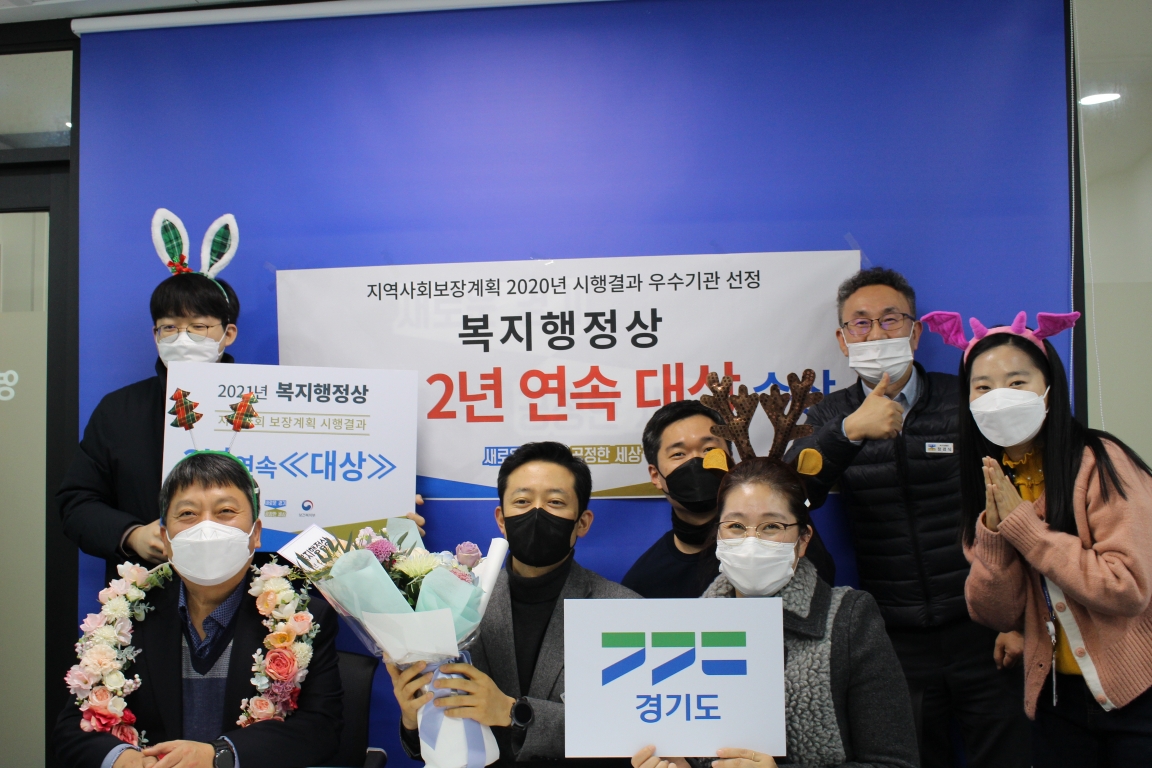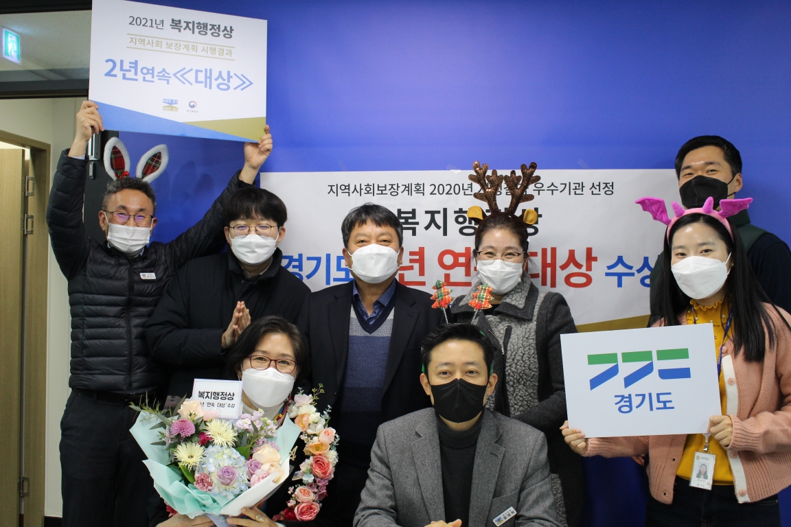 경기도가 보건복지부 주관 ‘2021년 복지행정상 시상식’에서 ‘지역사회보장계획 평가’ 분야 2년 연속 대상의 영예를 안았다.