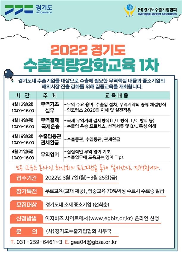 경기도가 코로나19, 디지털전환, 탄소중립 등 급변하는 글로벌 통상환경에 선제적으로 대응하고자 도내 수출기업 520개 사를 대상으로 ‘2022년도 수출역량강화 교육’을 무료로 추진한다고 17일 밝혔다.