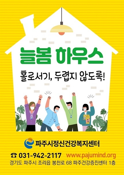 자세한 사항은 파주시정신건강복지센터 홈페이지(www.pajumind.org)를 통해 확인하거나 전화(☎031-942-2117)로 문의하면 된다.