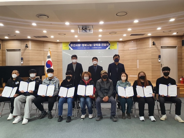 장학금은 지난해 10월 ‘문산사랑! 행복나눔!’ 유튜브 모금방송을 통해 기관·단체·개인 등 후원자들의 모금으로 이날 행사에 유튜브 모금방송을 후원한 권인욱 경기사회복지공동모금회 경기북부 회장, 이재석 문산기업인협의회장, 최일규 선유산업단지협의회장 등이 참석해 학생들에게 장학증서를 전달하고 격려했다.