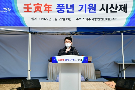 풍년기원 시산제는 2003년부터 시작해 파주농업인의 화합과 풍년을 기원하기 위한 제례와 민속전통놀이를 진행하는 흥겨운 행사로 올해는 코로나19 확산에 따라 행사규모를 축소해 제례행사와 개회식만 진행했다.