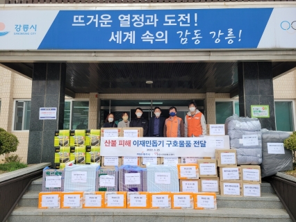 파주시는 3월 25일 (사)파주시자원봉사센터와 함께 산불로 피해를 입은 자매도시인 강릉시(옥계면사무소)와 동해시에 방문해 1억1천600만원 상당의 구호물품을 전달했다.