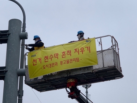 파주시, 선거 현수막 흔적(노끈 등) 지우기 실시