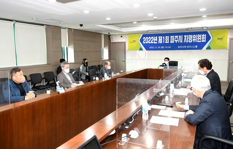 파주시는 3월 29일 파주시청 비즈니스룸에서 최종환 파주시장을 비롯해 우관제 파주문화원장, 김경민 아름다운 세상만들기 대표 등이 참석한 가운데 2022년 제1회 파주시 지명위원회를 개최했다고 밝혔다.