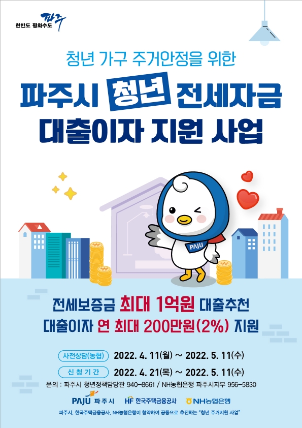 파주시, 청년 전세자금 대출이자 지원사업 신청·접수 - 최대 1억원 대출 추천, 연 최대 200만원 이자 지원