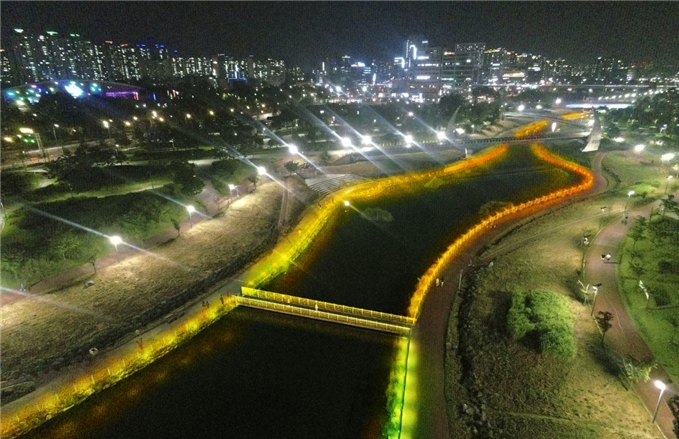 이번에 설치하는 야간 경관조명은 호수공원·소치천 합류부부터 하류까지 총 1.6km로, 4월 말 착공을 시작한다.