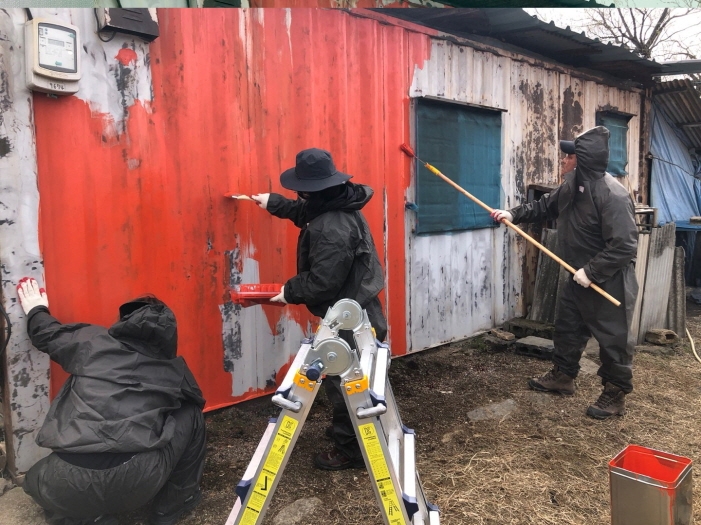 주거환경 개선 활동은 적성면에서 물품을 지원했으며, 경기행복마을관리소 지킴이 3명이 참여해 낡고 녹슨 컨테이너에 대해 외벽도색, 외부 화장실 수리, 방충망 교체 등을 진행했다.