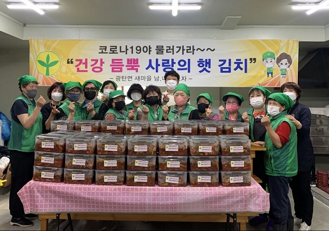 파주시 광탄면(면장 신승화)은 새마을부녀회(회장 박용복)가 지난달 29일 햇김치 100여통을 담가 사회복지시설과 독거노인 등 관내 취약계층에 전달했다고 밝혔다.