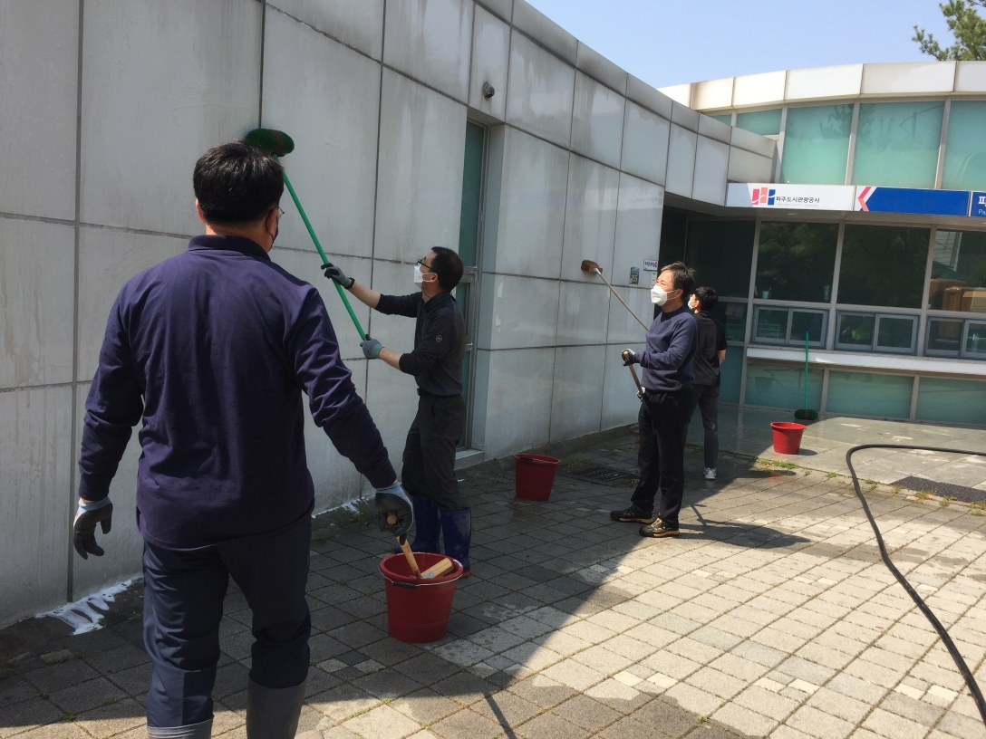 전문장비를 이용한 외벽청소를 하며, 시민들이 안심하고 편안하게 주차장을 이용