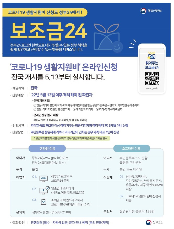 코로나19 확진자 급증 및 생활지원비 접수·처리에 따른 시민불편 및 업무부담을 경감하기 위해 시행하는 것으로, 신청대상은 2022년 5월 13일 이후 격리 해제된 확진자이다.
