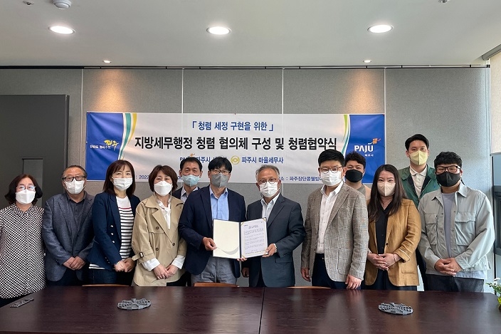 파주시는 19일 청렴 문화 정착·확산 및 상호협력을 위해 파주시세무사회(마을세무사)와 민관 청렴협의체를 구성하고 청렴 실천 협약을 체결했다고 밝혔다.