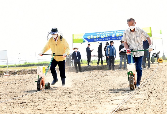 이번 모내기 및 콩파종 행사는 파주시장, 경기도농업기술원 소득자원연구소장, 파주장단콩연구회장 등 40여명이 참여했다.