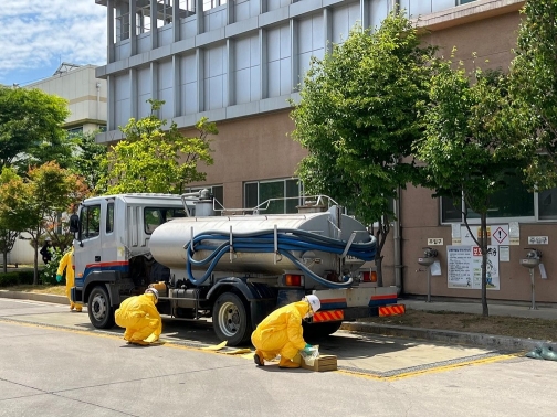파주시와 파주시 공공폐수처리시설 관계자 약 60여명이 참여한 가운데 탱크로리, 화학물질용 보호구, 세정시설 등의 장비를 동원해 진행했다.