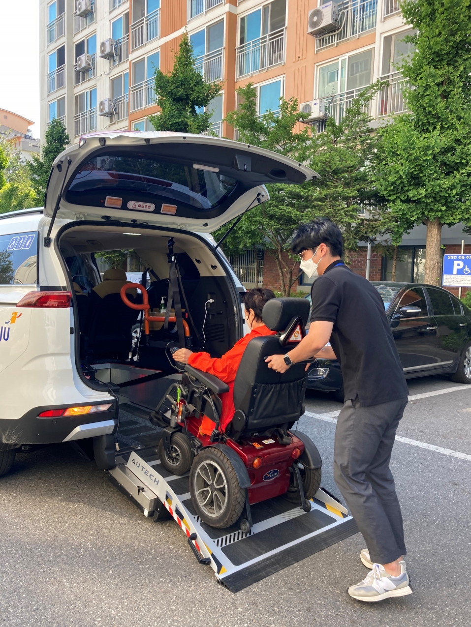 차량 내 전동보장구 충전이 가능한 특별교동수단을 거점 차고지별 1대씩 총 3대 운영하여, 고객 요청 시 배차되어 목적지까지 이동 시 전동 휠체어 충전 서비스도 이용 가능하도록 하였으며, 향후 수요에 따라 확대 운영할 계획이다.