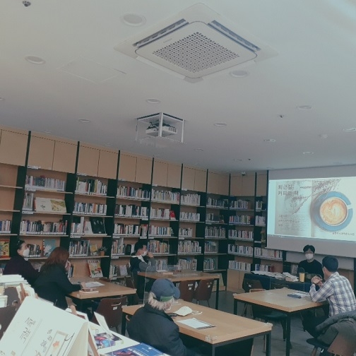 ‘퇴근길 커피와 책’은 금촌무지개작은도서관이 금촌역에 위치한 이점을 살려 기획한 프로그램으로, 퇴근길에 커피와 함께 독서 모임이 진행된다.