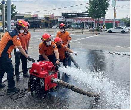 또한 소방펌프차량을 이용한 배수 훈련과 더불어, 동력소방펌프 등 수방장비에 대한 점검과 조작 훈련을 시행하는 등 대원들의 관련 역량을 강화하는 데도 주력한다.