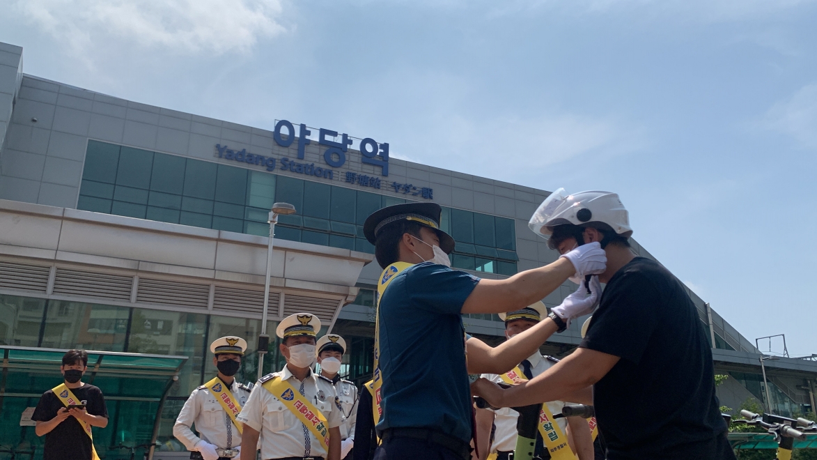 파주경찰서(서장 김용웅)는, 21일(화) 오전, 야당역 광장에서 한국교통안전공단 경기북부본부, 녹색어머니회와 전동킥보드 대여업체(지쿠터, 디어) 관계자들과 함께 개인형 이동장치의 올바른 이용을 위한 교통안전 캠페인을 펼쳤다.