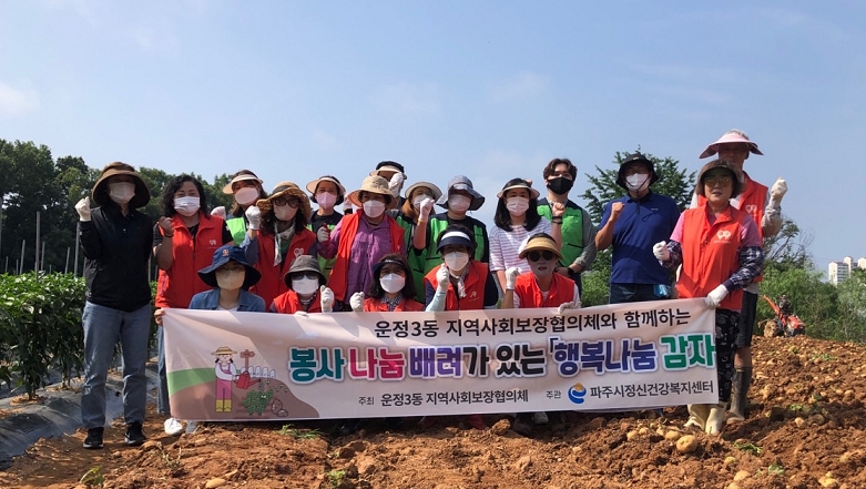 파주시 운정3동(동장 윤병렬)은 운정3동 지역사회보장협의체(위원장 권영세)가 지난 21일 ‘행복 나눔 감자 기탁’을 위한 감자를 수확했다고 밝혔다.