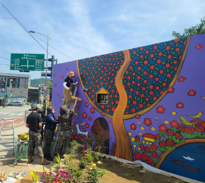 파주시 광탄면, 민·관·군 협동으로 유휴부지 꽃밭 조성 및 마을벽화 탄생