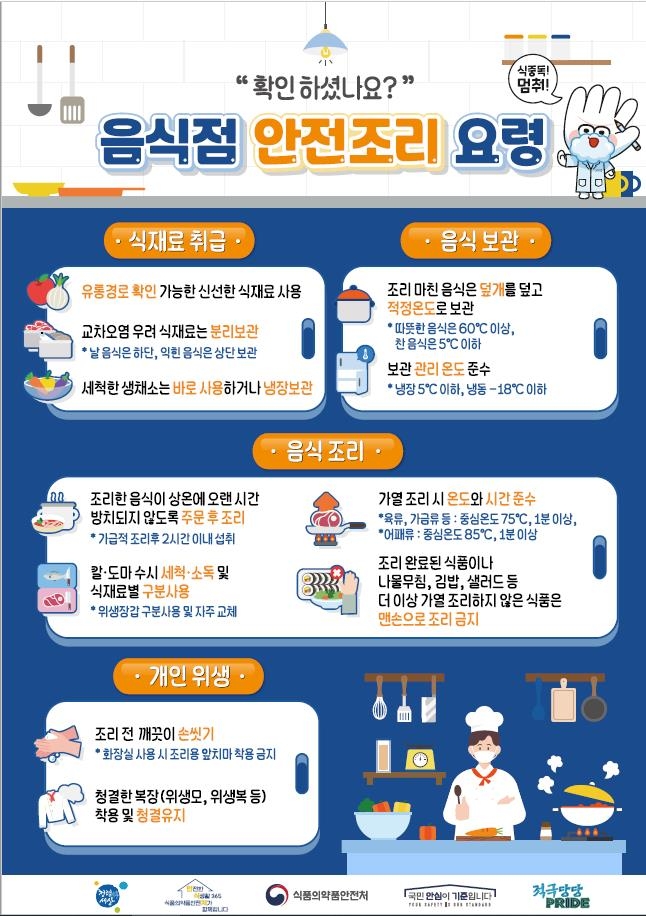 주요 홍보내용은 ▲위생적이고 안전한 음식 조리에 대한 계도 ▲식중독 예방요령 안내 ▲개인위생 지도 등이다.