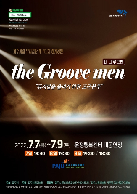 파주시는 오는 7월 7일부터 9일까지 운정행정복지센터 대공연장에서 시립예술단의 정기공연 뮤지컬 ‘더 그루브맨’ 공연을 개최한다고 밝혔다.