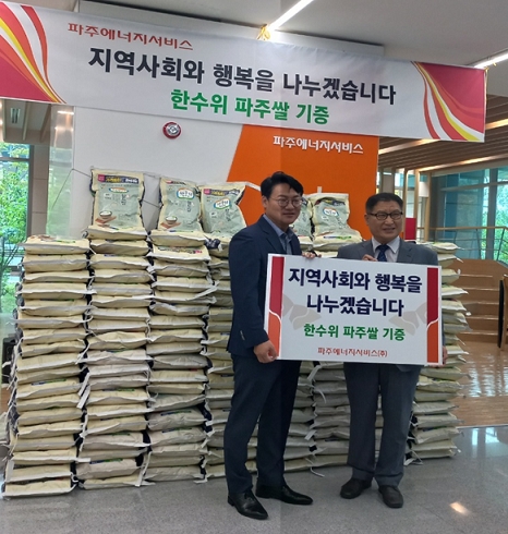 파주시사회복지협의회(회장 최명성)는 지난 6일 파주시 에너지 서비스(파주ES)로부터 한수위 파주쌀 590포(5,900Kg)를 기탁 받아 관내 취약계층을 대상으로 나눔을 실천했다고 밝혔다.