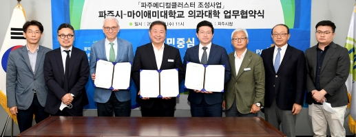 김경일 파주시장은 “이번 마이애미대 의과대학 R&D센터 유치를 통해 바이오헬스 산업의 신성장 거점으로 도약하기 위한 기초를 마련했다”며 “국내를 넘어 세계와 경쟁 가능한 차별화된 바이오메디컬 클러스터로 조성되도록 적극 지원하겠다”고 말했다.