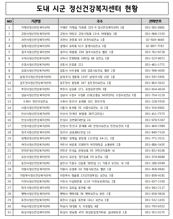- 경기도, 정신건강 취약계층 ‘더 많은, 더 나은’ 치료 기회 부여 차원서 결정