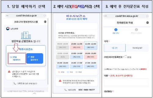 파주시, 선별진료소 코로나19 검사 당일 예약 실시