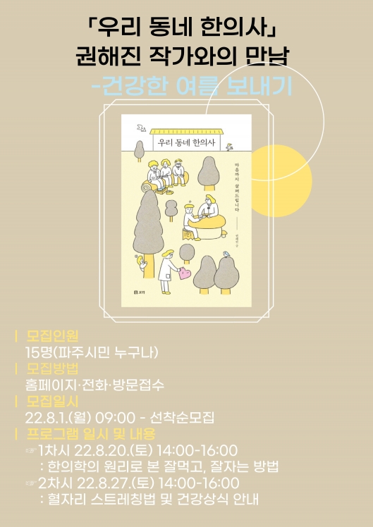 파주시 중앙도서관, ‘우리 동네 한의사’저자 권해진 작가와의 만남 - 여름철 건강관리 방법 소개