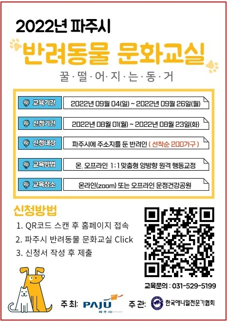 파주시, 9월 4일부터 반려동물 문화교실 프로그램 시행