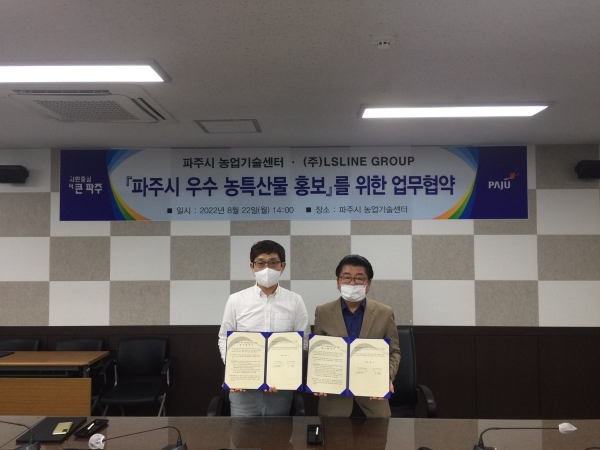 파주시(시장 김경일)는 지난 22일 파주시농업기술센터와 ㈜LSLINE GROUP이 관내 우수농특산물 홍보영상물 제작을 위한 업무협약을 체결했다고 밝혔다