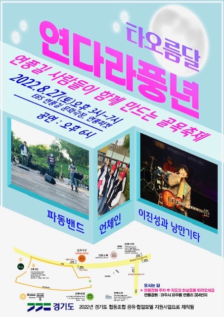 연다라풍년 행사는 지난 4월에는 아나바다 플리마켓을, 6월에는 주민노래자랑과 7월에는 ‘파주 작가 다 모여라~‘를 테마로 프로그램을 진행한 바 있다.