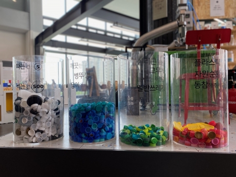 교육 내용은 ▲병뚜껑 수집 이유 ▲재활용 가능한 물품과 분리 방법 ▲무인 수거함 사용법 ▲스탬프 리워드 프로그램, 그린에피 그린데이 소개 ▲사출기 시연 등이다.