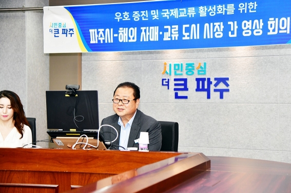 김경일 파주시장, 해외 자매·교류도시 시장들과 영상회의 - 도시 간 우호 증진 및 교류협력 방안 논의