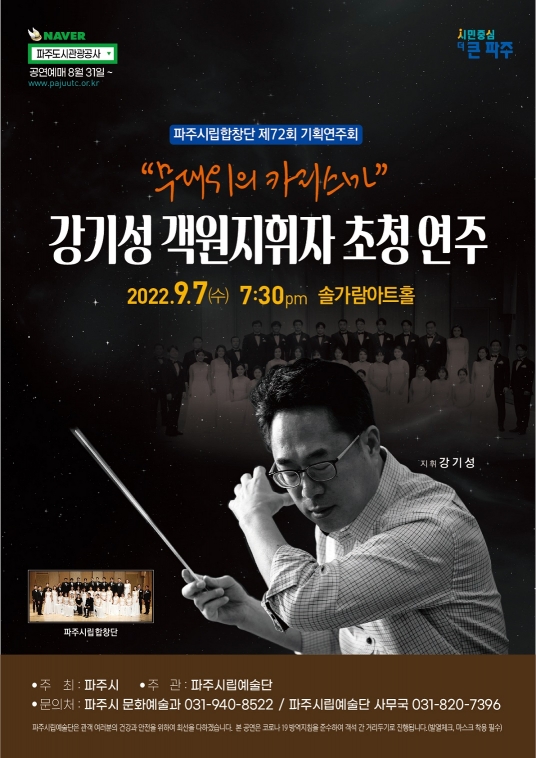 이번 공연은 한국 합창계에서 왕성하게 활동하는 강기성 지휘자를 초빙해 파주시립합창단과 함께 선보이는 무대로, 합창의 여러 장르를 통해 합창음악의 미를 널리 알리고자 한다.
