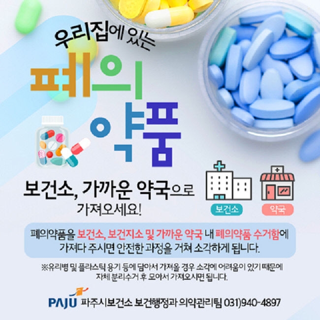 파주시 보건소(소장 임미숙)는 가정 내 올바른 폐의약품 분리배출 방법에 대해 홍보하고 있다.