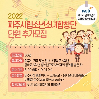 2022 파주시립소년소녀합창단 단원 공개 모집